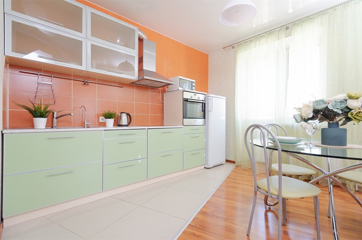 - Оборудование: гладильная доска, духовой шкаф, микроволновая печь, набор посуды, плита электрическая, стиральная машина, телевизор, утюг, холодильник, электрочайник